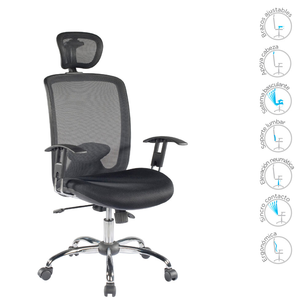 Silla Boconó Plus Muebles Axis » Catálogo » Oficina » Sillas » Silla Boconó Plus Materiales Asiento en tela Respaldo en malla Base metálica cromada Medidas Asiento: 51x47cm Respaldo 47x54cm Altura del asiento 43x51cm Precio: VEF0,00