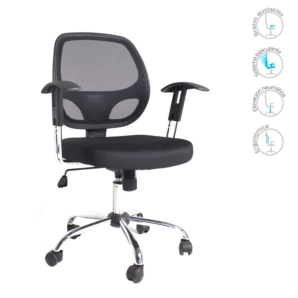 Silla Moruy Plus Muebles Axis » Catálogo » Oficina » Sillas » Silla Moruy Plus Materiales Asiento en tela Respaldo en malla Base metálica cromada Medidas Asiento: 47x46 cm Respaldo: 45x43 cm Altura del Asiento: 46x54 cm Precio: VEF0,00